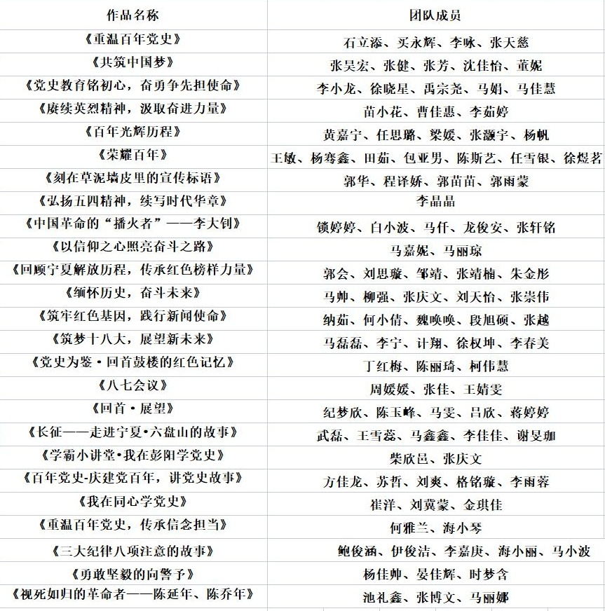 本次活动面向全校学生开展,在过去的一个半月的时间里 ,各学院经过初赛评比,共推荐80余部视频作品,充分展现了同学们青春心向党的精神风貌。5月25日,评委们依据评审规则,秉持公平、公正、公开的原则,根据视频作品主题和内容、视频制作、表达能力等各方面认真评选,最终确定了“重温百年党史 传承信念担当” 第二届“学霸小讲堂”短视频大赛决赛入围名单。