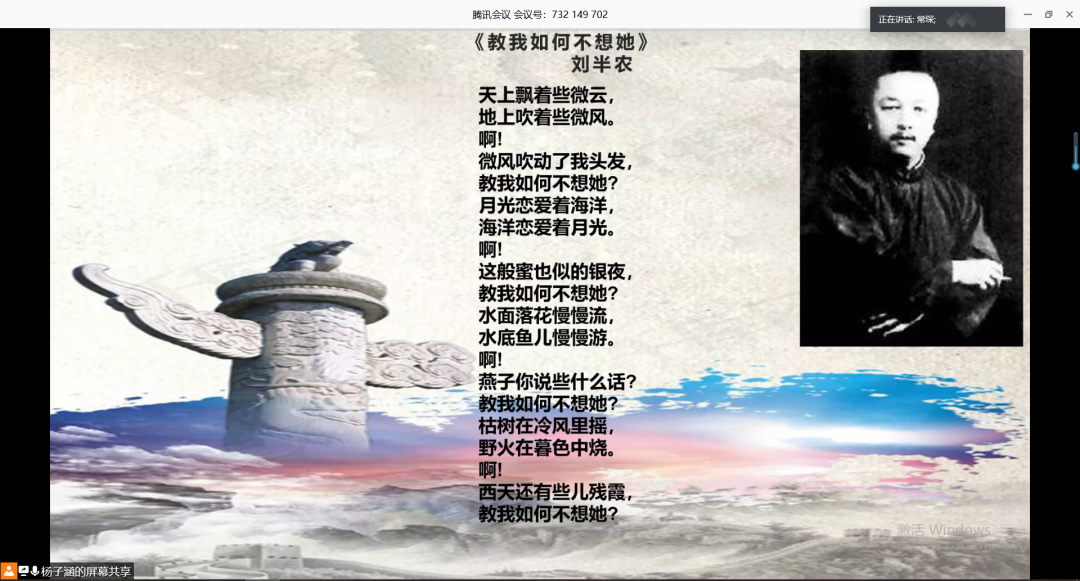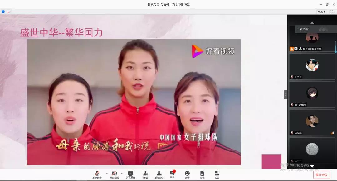 “520”喻义“我爱你”,在今天这个特殊的日子里,我们不仅要告白身边重要的人,还要向我们伟大的祖国表达深深的爱意!此次活动中,各班团支书通过腾讯会议组织同学们观看了有关抗疫与祖国取得辉煌成就的短视频,19级3班常琛同学饱含深情地朗读了刘半农先生的作品《叫我如何不想她》,表达了她对祖国深切的爱。“有了强的国,才有富的家”,我们的祖国曾经颓败萎靡、千疮百孔,跨越历史的洪流,今天的中国繁荣富强,国泰民安。在此次抗疫中,中国特色社会主义制度凸显出巨大的优越性,人民的生命安全得到保障,康复的患者也曾表示:“为生在中国而感到幸运、幸福!”活动中,19级三班谢鹏程同学和大家分享了自己提前录好的歌曲《我爱你,中国》,情感真挚,极富感染力,让同学们不禁也跟着吟唱起来。