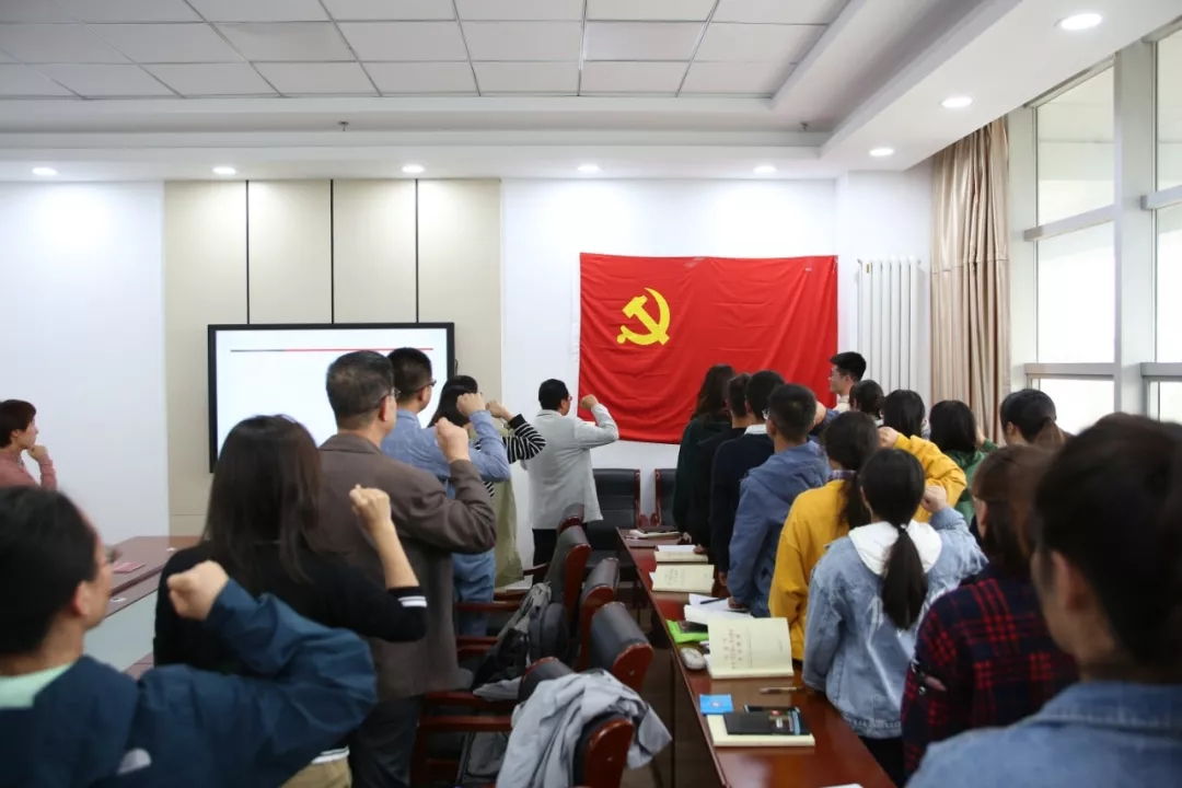 10月9日下午,我院党总支于文荟楼四楼会议室开展“重温入党誓词 回望初心使命”主题活动。周强书记带领全体党员面对党旗庄严宣誓,旨在让广大党员重温初心,时刻牢记党员身份,承载起党初创时的希冀与责任,在新时代的道路上砥砺前行。