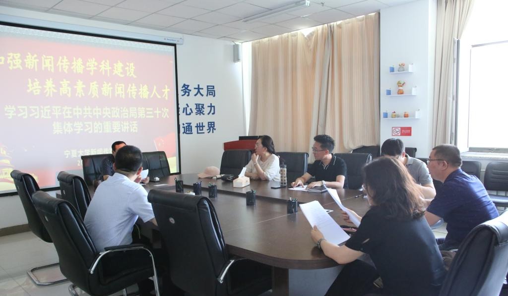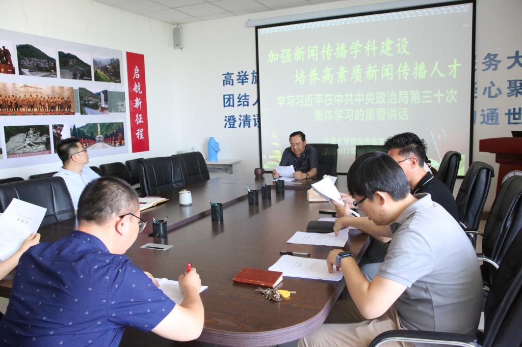 组织全体教职工学习习近平总书记在中央政治局第三十次集体学习时的重要讲话精神,学院党总支书记周强主持学习。