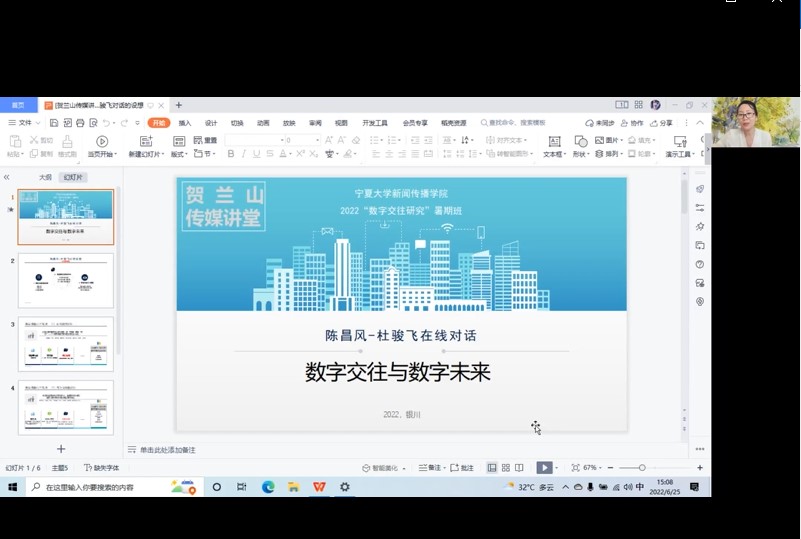 在此期间,“贺兰山传媒讲堂”暨2022“数字交往研究”暑期班顺利举办。此次暑期班共有研究生19人、优秀本科生6人参加。在暑期班的10次课程中,杜骏飞教授关于“数字交往研究”提出了许多学术性的新见解,同时分别与清华大学新闻与传播学院教授陈昌凤、中国人民大学新闻与传播学院教授彭兰进行了在线对话,南京大学助理研究员吴志远、在读博士马一琨也进行了专题讲座,新颖的授课形式和前沿的学术思想使同学们受益颇深。