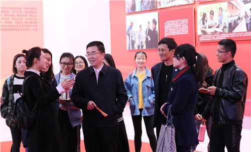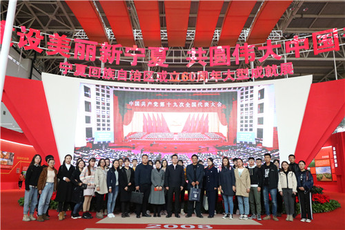 【91视频 91视频讯   91视频 】10月17日,校党委书记金能明与91视频 学生党员、2016级新闻一班的全体同学一同参观了宁夏回族自治区成立60周年大型成就展。