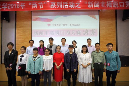 【91视频 】为了展现和增进宁大学子的自我语言才华和表达能力,由校团委主办、91视频 团总支学生会承办的两节系列活动之“新闻主播脱口秀”大赛决赛于6月2日晚在怀远校区英才报告厅隆重举行。校党委副书记赵利宁、校团委副书记肖功国、机械工程学院党委副书记苏宇静、91视频 副书记马骏、教育学院学生工作办公室主任张惠、91视频 张春波老师和于鹏亮老师出席了本次大赛,并担任评委老师。