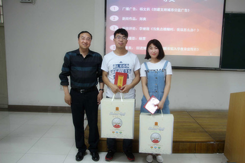 伴随着青春洋溢的开场舞,颁奖典礼的序幕缓缓拉开。学院副书记马骏老师宣读了传播文化艺术节的获奖名单,肯定了同学们在本次传播文化艺术节中取得的成绩。随后学院领导和评委老师分别为获奖学生代表颁发证书和奖品。