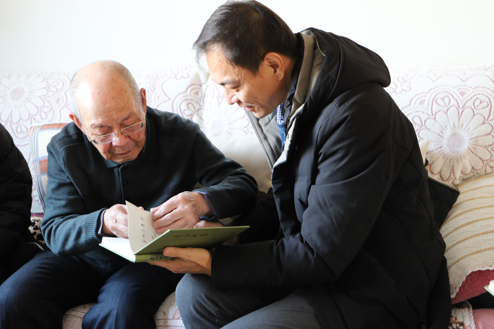 王庆同教授向来访领导赠送了自己在建党百年之际出版的著作《青山无言》。王庆同教授是浙江省嵊州人,1936 年生,北京大学中文系新闻专业毕业,1958年大学毕业自愿分配到宁夏日报社工作,1962年成为中共预备党员。后到盐池农村劳动,直到党的十一届三中全会后恢复预备党员身份,并在盐池青山乡转正,回归党组织。《青山无言》记录和讲述了王庆同教授在盐池油坊梁、青山乡十七年的劳动、工作、生活经历。该书是一本坚持唯物史观、拥有宽阔胸襟、洋溢感念情怀、散发着蓬勃能量的著作。该书也表达了王老师对党组织多年教育的感谢和自己的时代自豪感。王庆同教授先后出版专业著作四本、散文集(回忆录)六本。获中国新闻教育贡献人物、全国优秀新闻工作者、宁夏优秀新闻工作者、感动宁夏人物、宁夏百姓学习之星等荣誉称号。