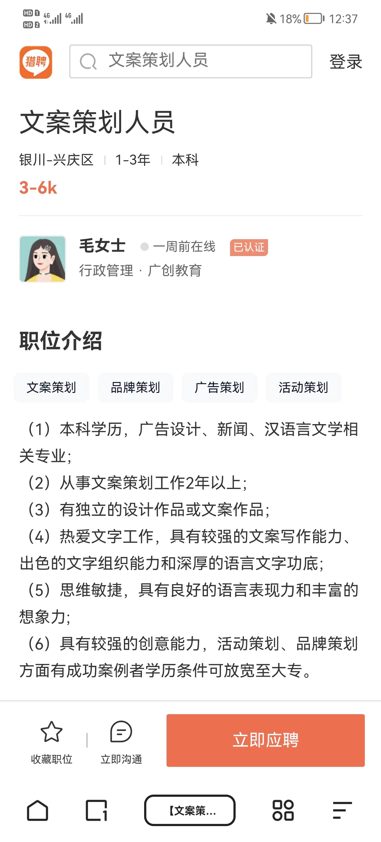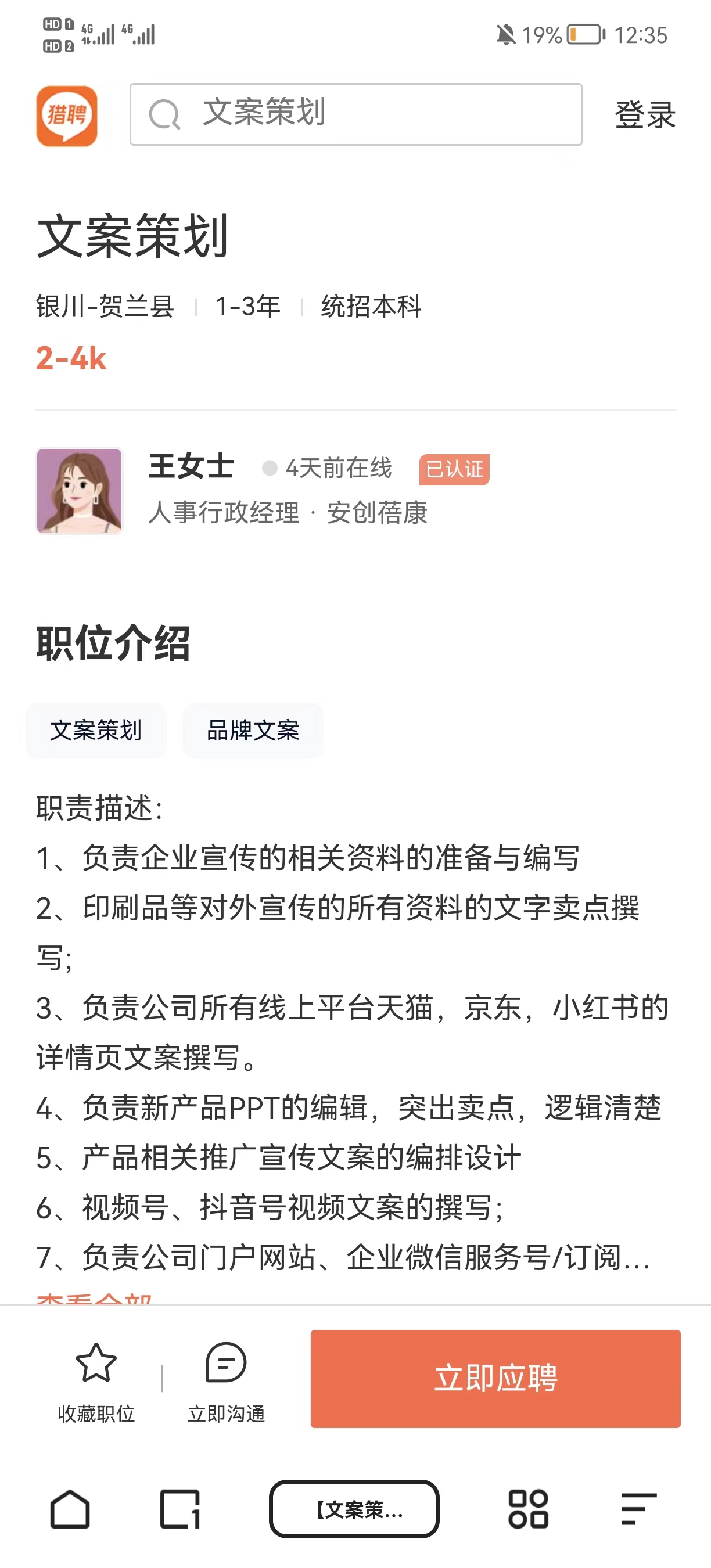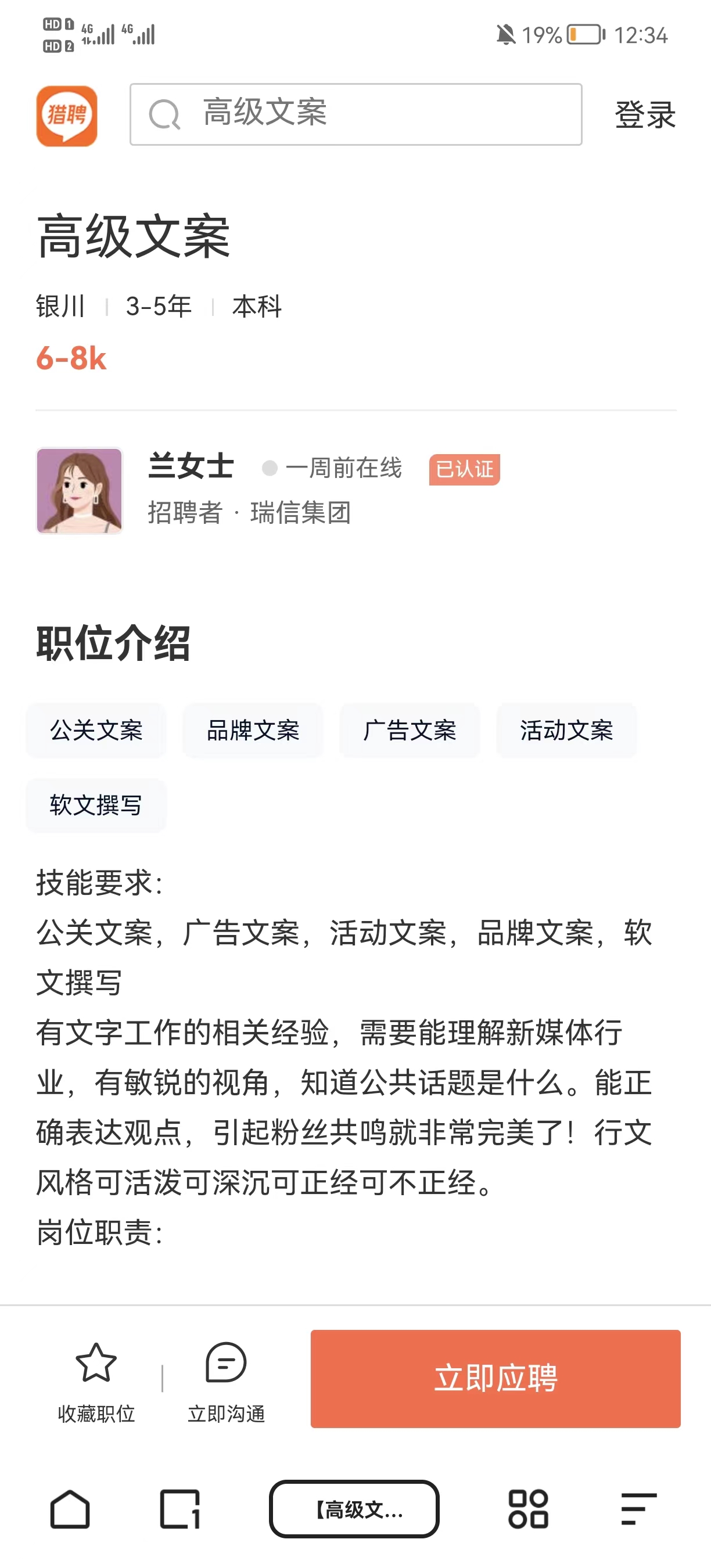 岗位:高级文案