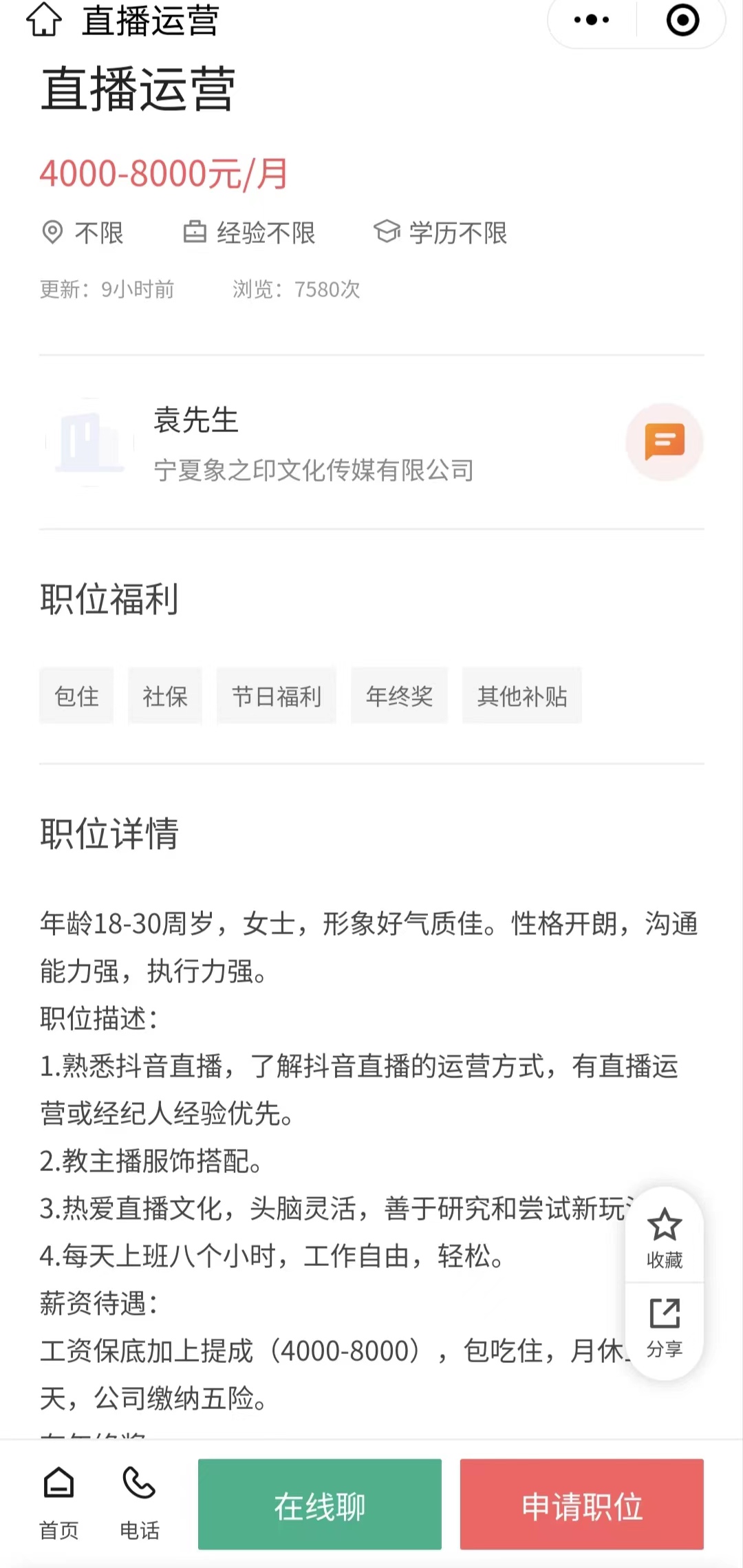 岗位:直播运营