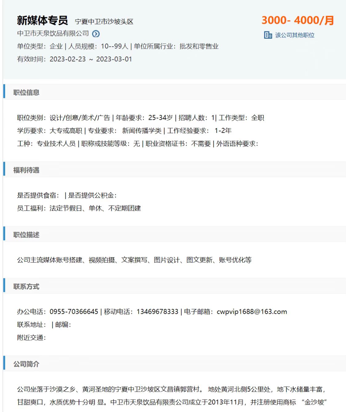 1、岗位:新媒体专员