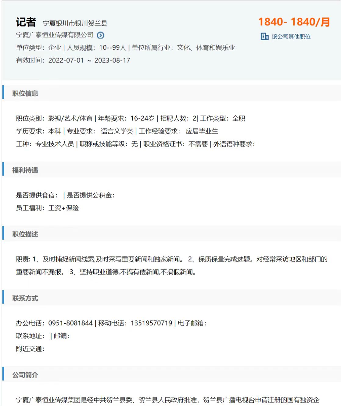 公司:宁夏广泰恒业传媒有限公司