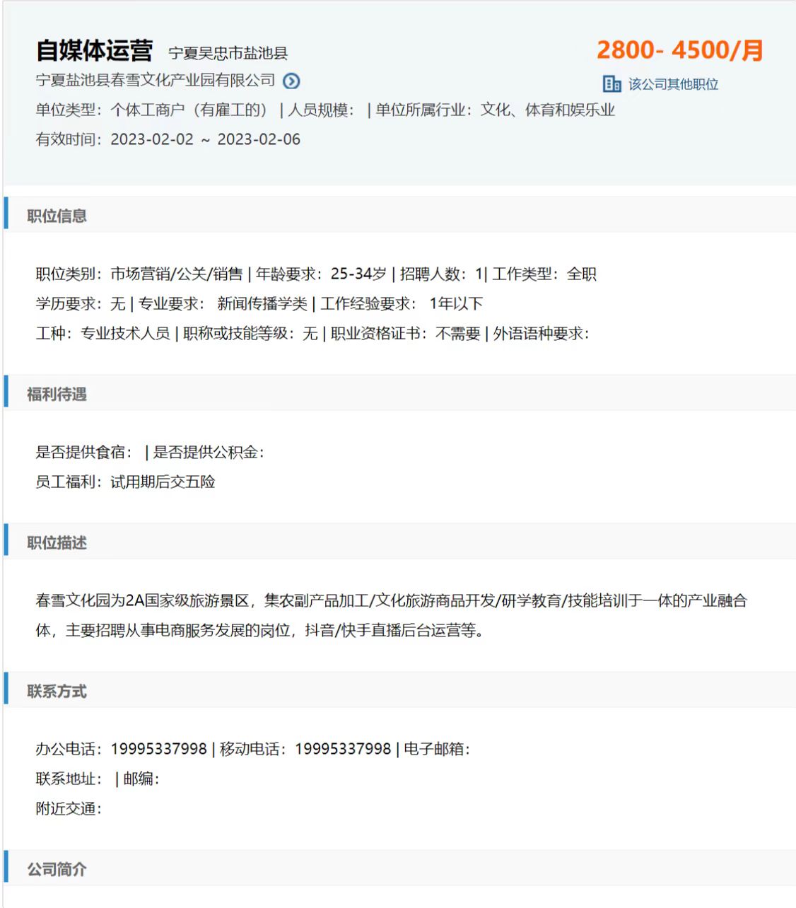 公司:宁夏盐池县春雪文化产业园有限公司