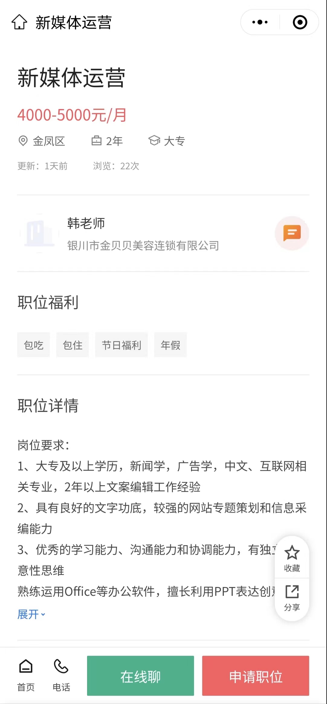 岗位:新媒体运营