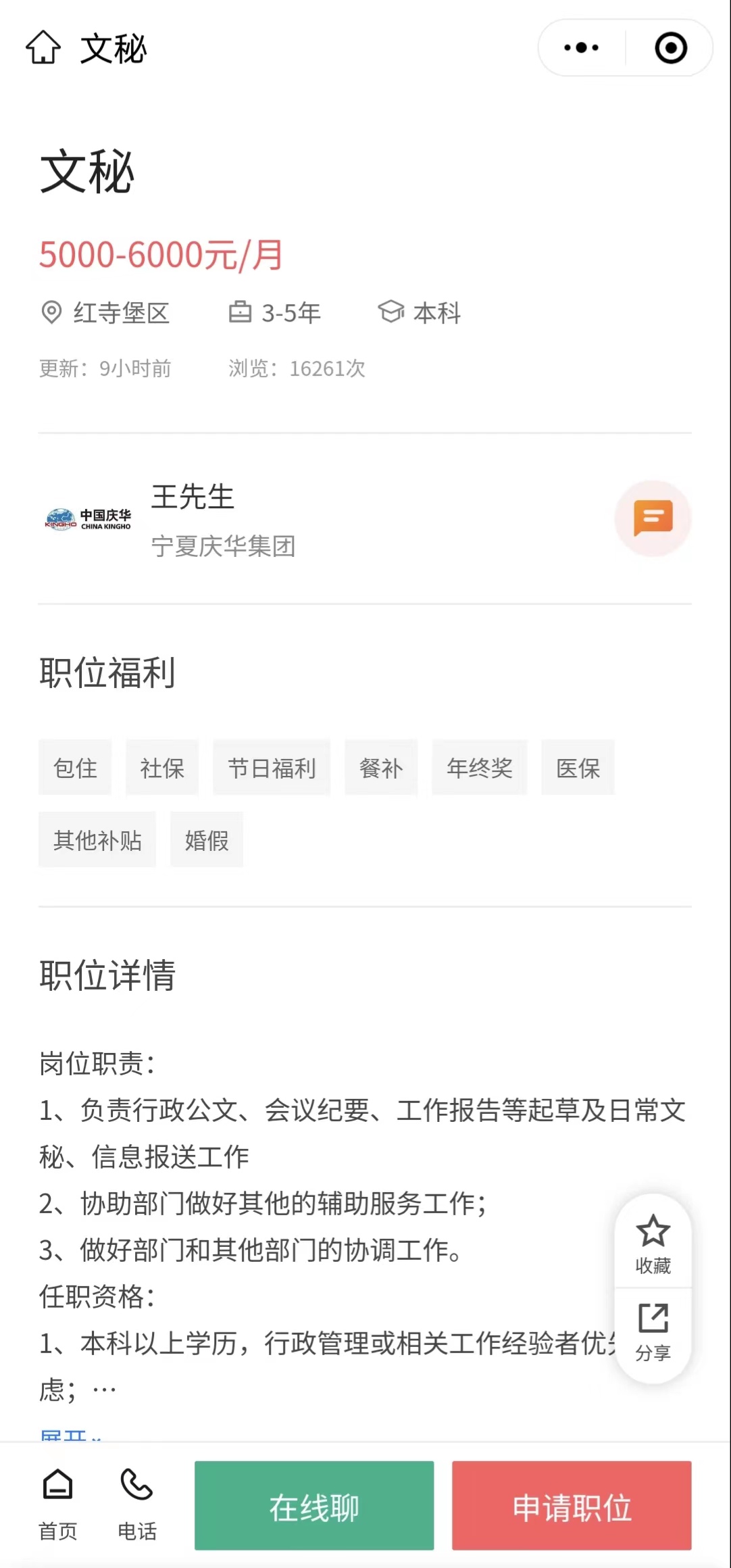 岗位:文秘