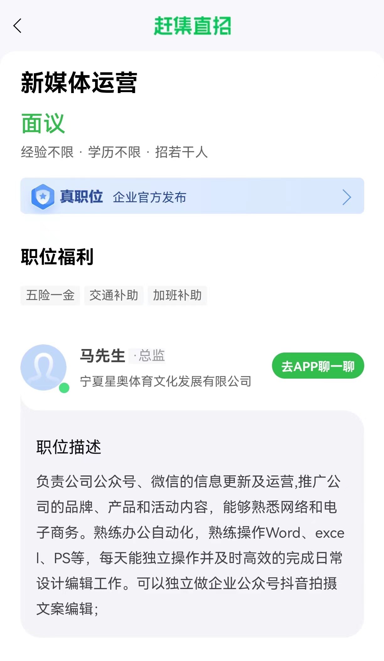 岗位:新媒体运营