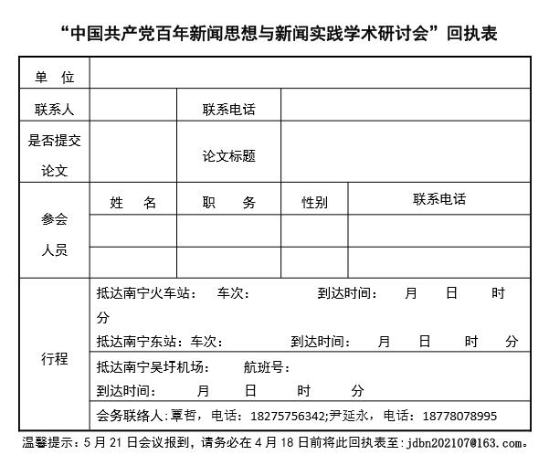 期待全国新闻院校师生、研究机构学者、新闻媒体朋友踊跃参会,共襄盛举,用丰硕的研究成果庆祝党的百年华诞!