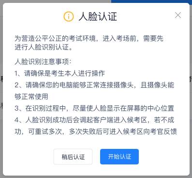 考试开始时,考生需要点击“人脸识别认证”按钮进入,需要允许获取摄像头权限