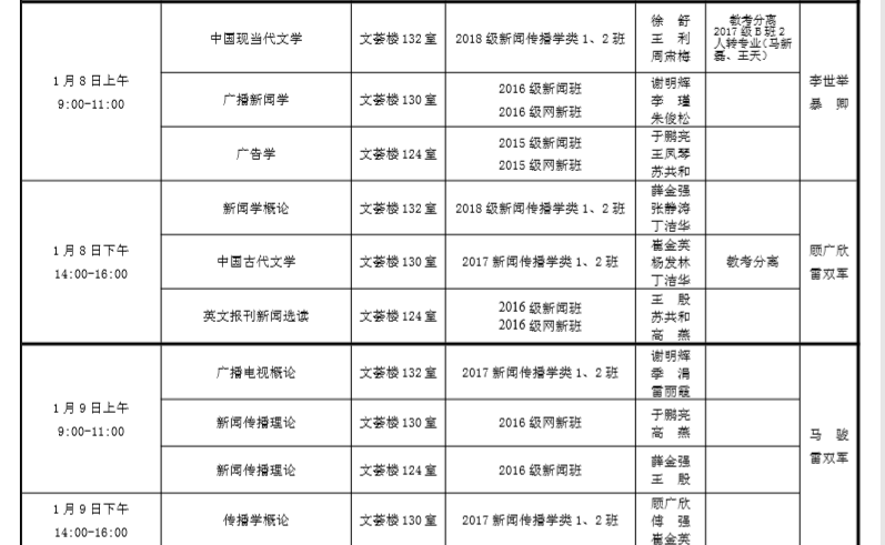 说来就来,期末考试安排表新鲜出炉!快来一睹为快吧!