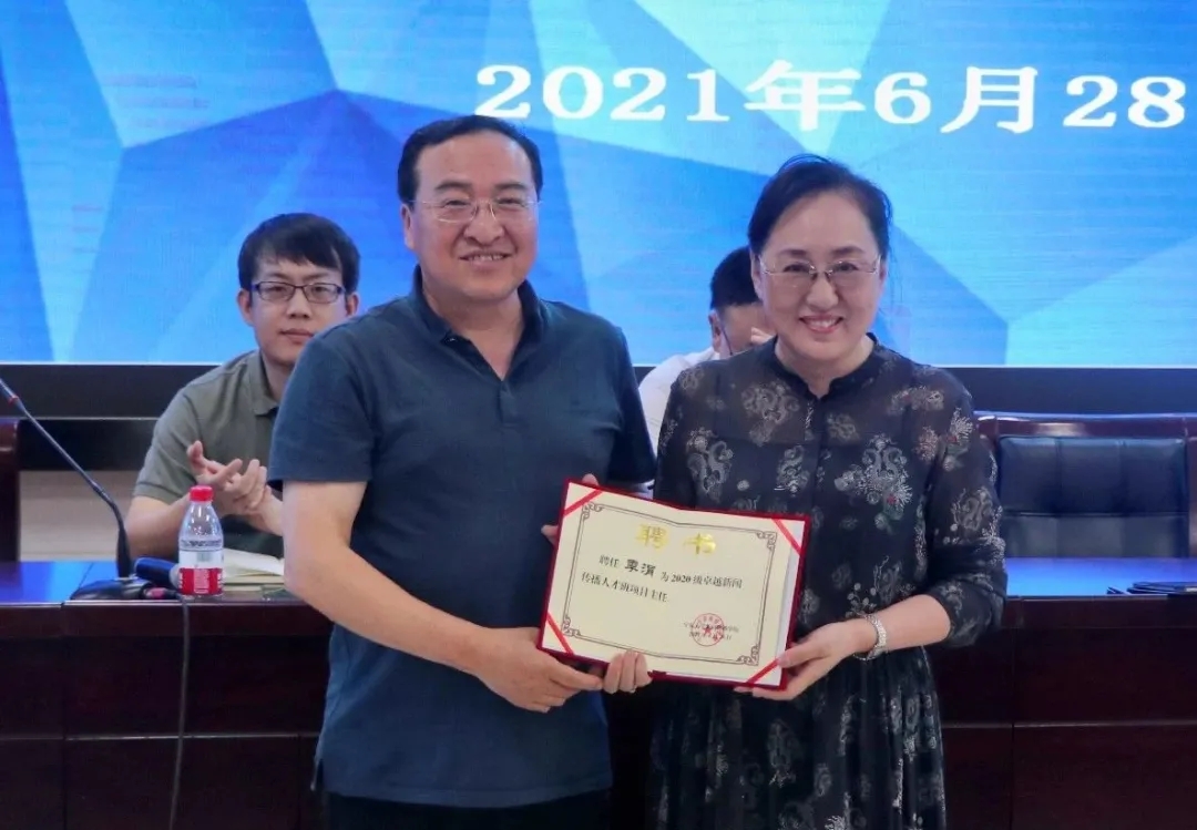 会议开始,李世举从学院3个专业的特色和发展方向,对我院的人才模式创新与改革进行深度解读,又为2020年级学生做了专业指导,并阐述了项目主任负责制的意义。随后于鹏亮宣读聘任名单:聘任季涓为2020级卓越新闻人才班项目主任,张静涛、杨璠为2019级网络与新媒体班、2020级网络与新媒体班项目主任,由周强和李世举分别为三位教师发放聘书。