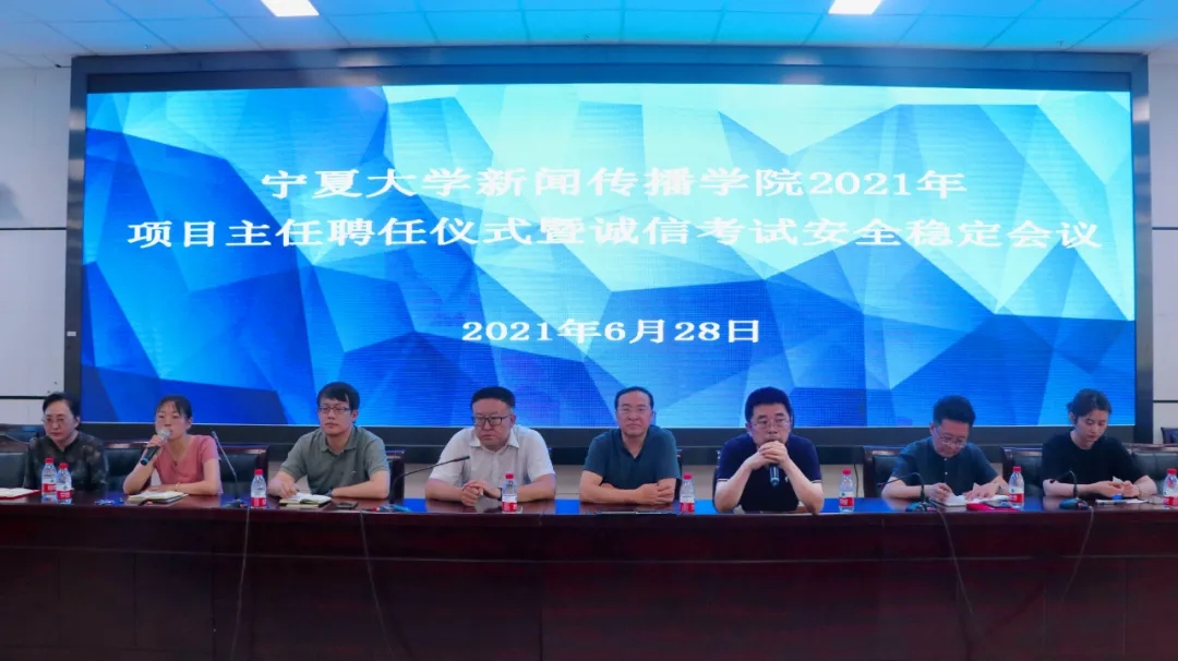 2021年项目主任聘任仪式暨诚信考试安全稳定会议”,会议由学院副院长于鹏亮主持,学院党总支书记周强,执行院长李世举,党总支副书记李晓珉,副院长张静涛,学生辅导员雷丽霞,教师季涓、杨璠和我院全体学生参加本次会议。