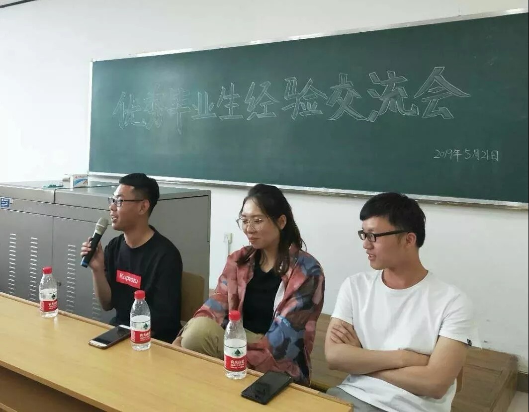 5月21日下午,我院于文荟楼207教室组织优秀毕业生给学院学生做了升学经验交流会。参加此次交流会的有我院2019届毕业生谷冰阳、方宁、刘巧荣、周学江、刘冬萌、彭芳芳六位同学。