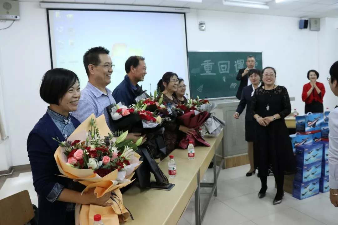 主持交流会的99级学生刘晓丽代表在场同学向兢兢业业、勤恳教学的老师们表达了诚挚的感谢,师兄师姐们也纷纷向老师们敬献花束,赠送礼品,场面十分温馨。为了让老师们了解同学们的现状,刘川为大家播放了99级新闻班精心制作的PPT,更令人感动的是,因出任务而无法到场的一位消防官兵严龙特意给老师们录制了视频,视频的最后一句“我想念你们”让老师和师兄师姐们动容不已。