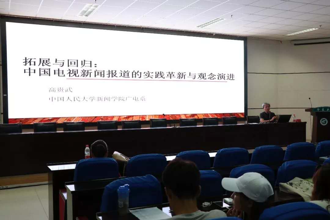 7月2日晚,我院传媒大讲堂特邀中国人民大学新闻学院广播电视系主任高贵武教授在文荟楼东报告厅作学术报告。高教授以《拓展与回归:中国电视新闻报道的实践革新与观念演进》为主题,向在座的师生介绍了中国电视产业所面临的困境以及未来发展趋势。我院常务副院长李世举、季涓教授出席报告会。