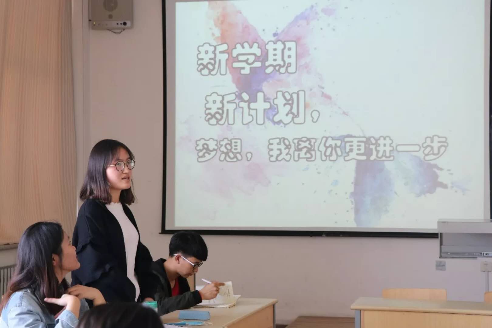 党委书记金能明全程参加了这次主题为“新学期、新气象——我离梦想更近一步”的团日活动,并对同学们给予高度评价。