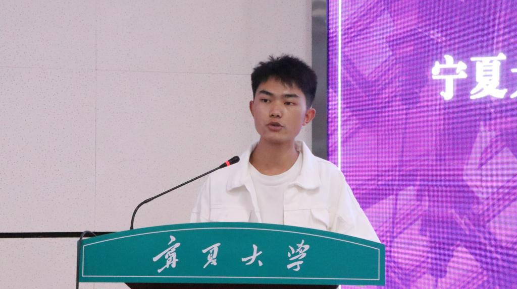 随后2020级研究生代表方宁同学和2021级本科生代表向金福同学发言,他们结合专业与大家分享自己的体会和经验,畅谈求学的初衷,希望同学们将“尚德、勤学、求是、创新”的校训传承下去。