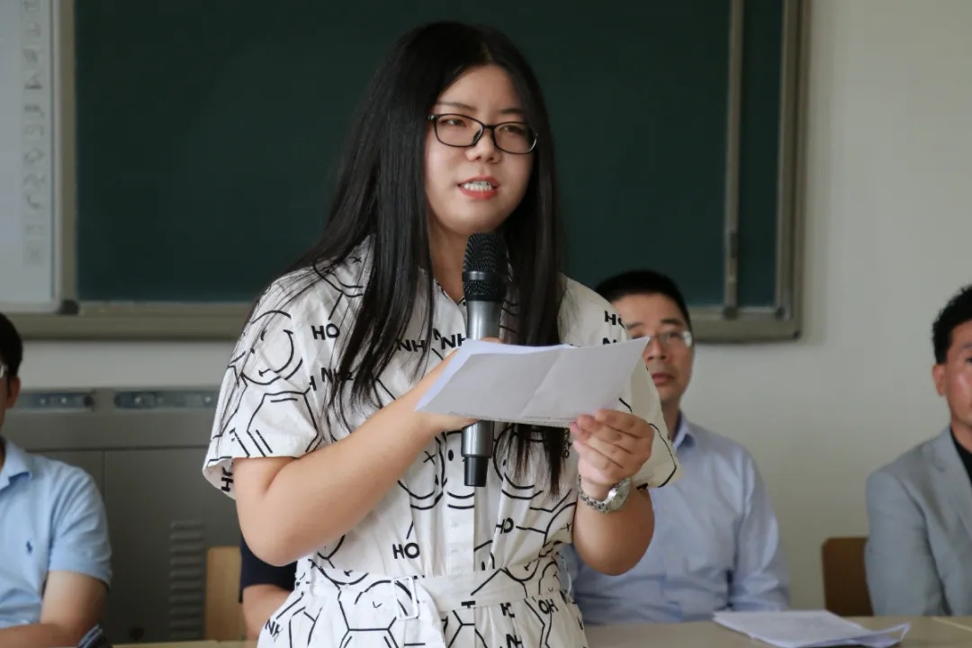 最后,新生代表崔秀玲发言,她表示,在中国共产党成立100周年之际,要胸怀上青天揽月的抱负,续写我院研究生教育的卓越篇章,为祖国的繁荣发展做出自己应有的贡献。