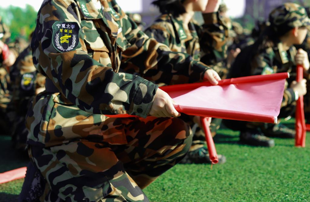 新生们手握红旗