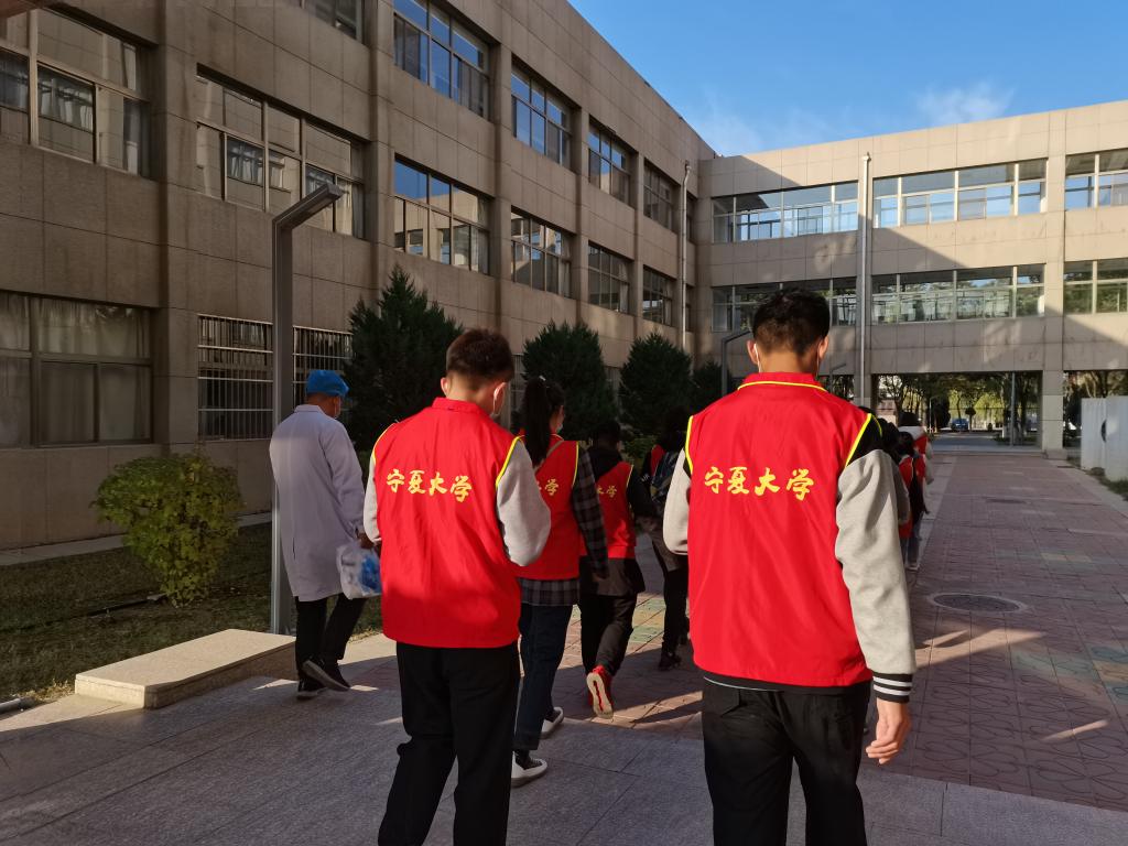 宁夏的疫情,时刻牵动着大家的心,也牵动着我们宁大学子的心。疫情就是命令,防控就是责任。作为一名学生志愿者,一名入党积极分子,在志愿招募第一时间,我就毫不犹豫地报名参加了我校第一、二轮的核酸检测志愿工作。同时作为一名青年大学生,我认为保护家乡、保护人民的安全从来都是我们义不容辞的责任与义务。十月的宁夏秋风萧瑟,落叶飘零,但十月的宁夏,也人心涌动,暖意盎然。希望我们的小小行动,能够化作大大的力量,传递温暖。