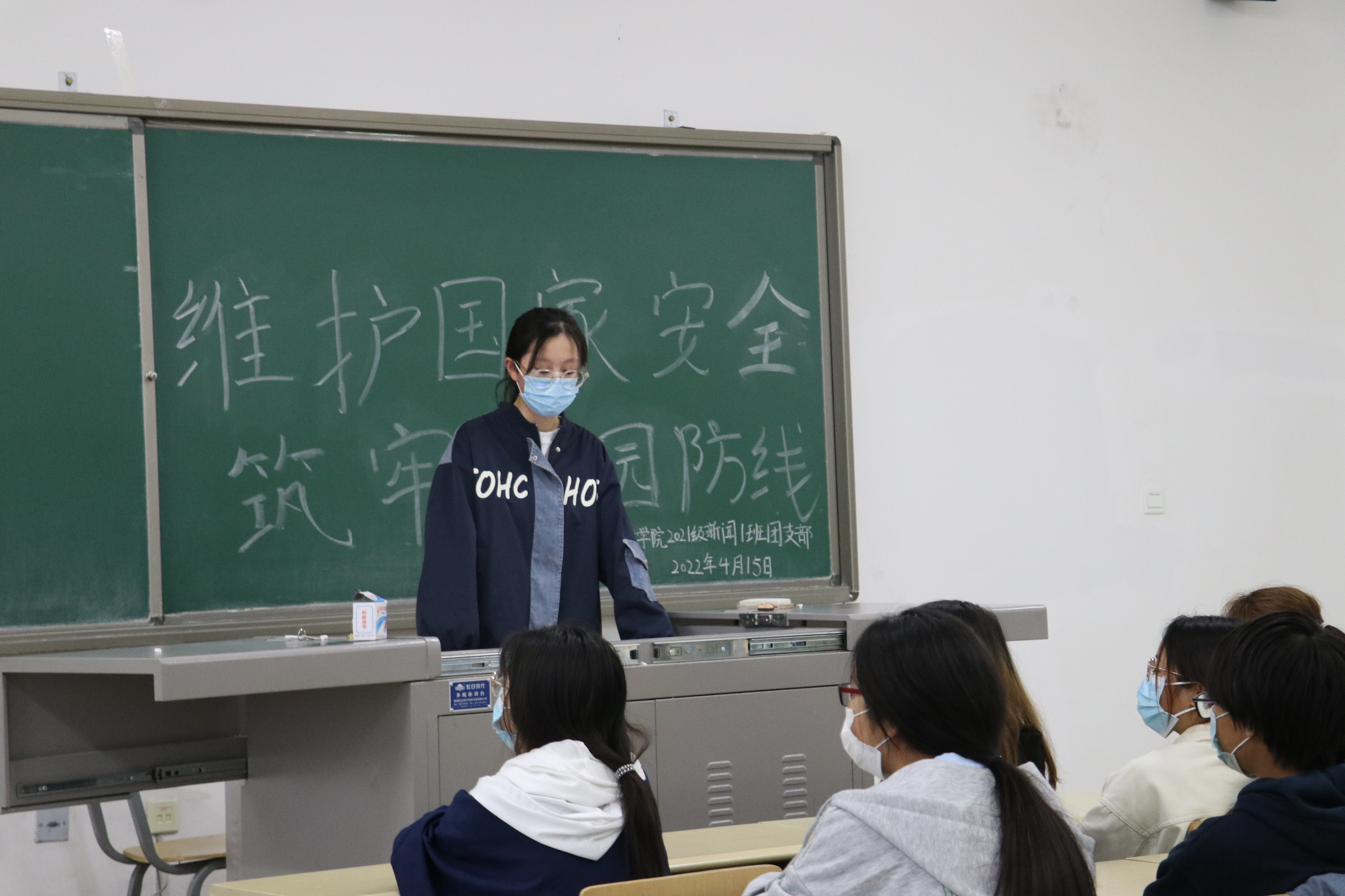 团日活动结束后,21级三班蒋楚楚说到,“国家兴亡,匹夫有责。维护国家安全,每个人都不是局外人、旁观者,而是参与者,践行者。我们更要时刻将国家安全意识筑牢心中,以防患于未然。”