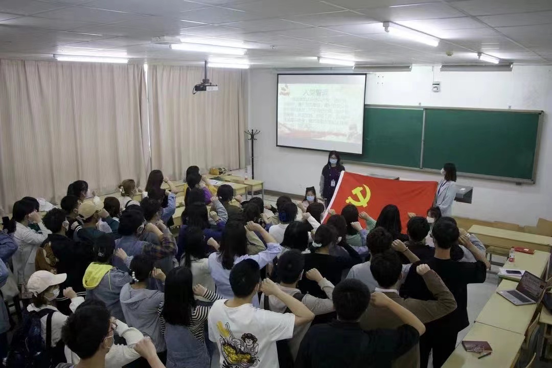 根据疫情防控工作相关要求,本次会议采用“线上+线下”的方式进行。大会讨论了28名预备党员转正及24名发展对象接收为预备党员的问题。会上,李懿哲等28名预备党员依次汇报了自己预备期内在思想、学习、生活以及工作上的进步和不足,综合入党介绍人和与会人员意见,经正式党员无记名投票后,所有预备党员按期转正。杨子涵等24名发展对象宣读入党志愿书,汇报了自己对党的认识及在校期间的综合表现,表明了自己入党的决心和今后的努力方向。经过充分讨论、审议、无记名投票,24名同志被接收为中共预备党员。雷丽霞带领新党员进行入党宣誓,与会党员重温入党誓词。党员们举起右拳,面向党旗,庄严宣誓。现场响起了激昂的宣誓声,党员用发自内心的声音表达了对党的忠诚与热爱。