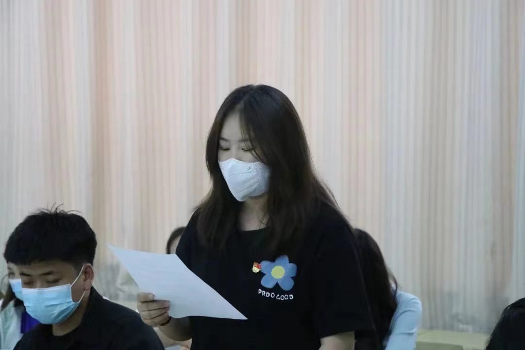 会议最后,雷丽霞谈到,各位党员同志不断加强理论知识学习,要深刻领会习近平总书记在庆祝中国共青团成立100周年大会上的重要讲话精神;以新党章作为自己行动的指南,时刻牢记党员身份,履行党员义务,勇于担当责任,以身作则,积极发扬党员的先锋模范作用。