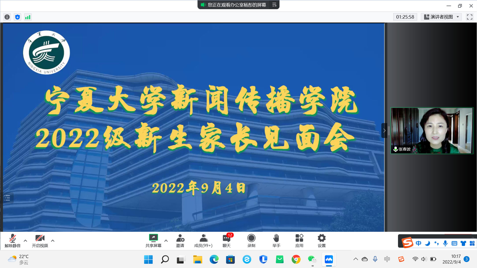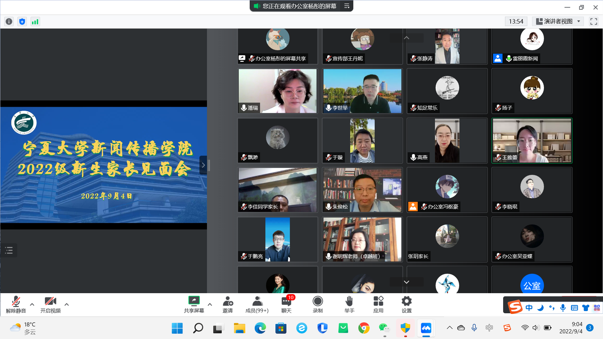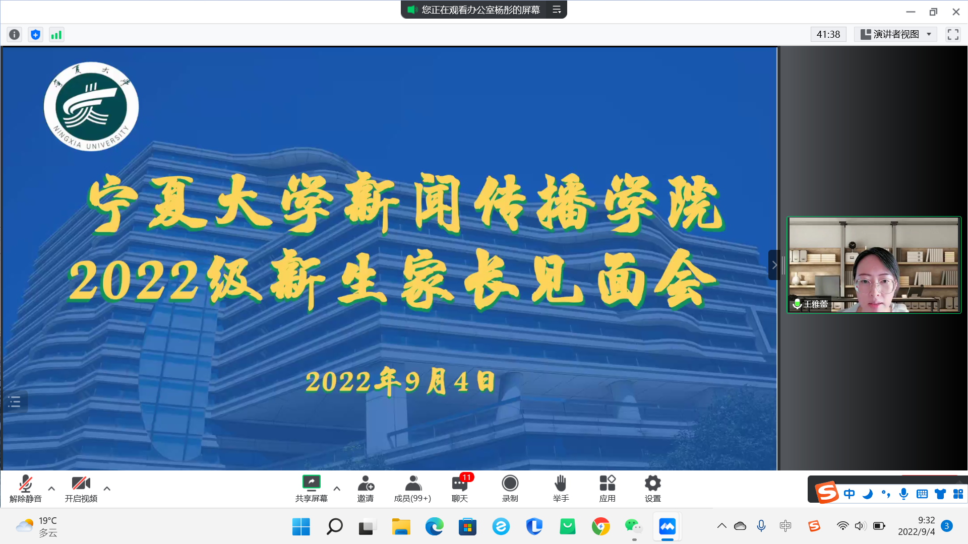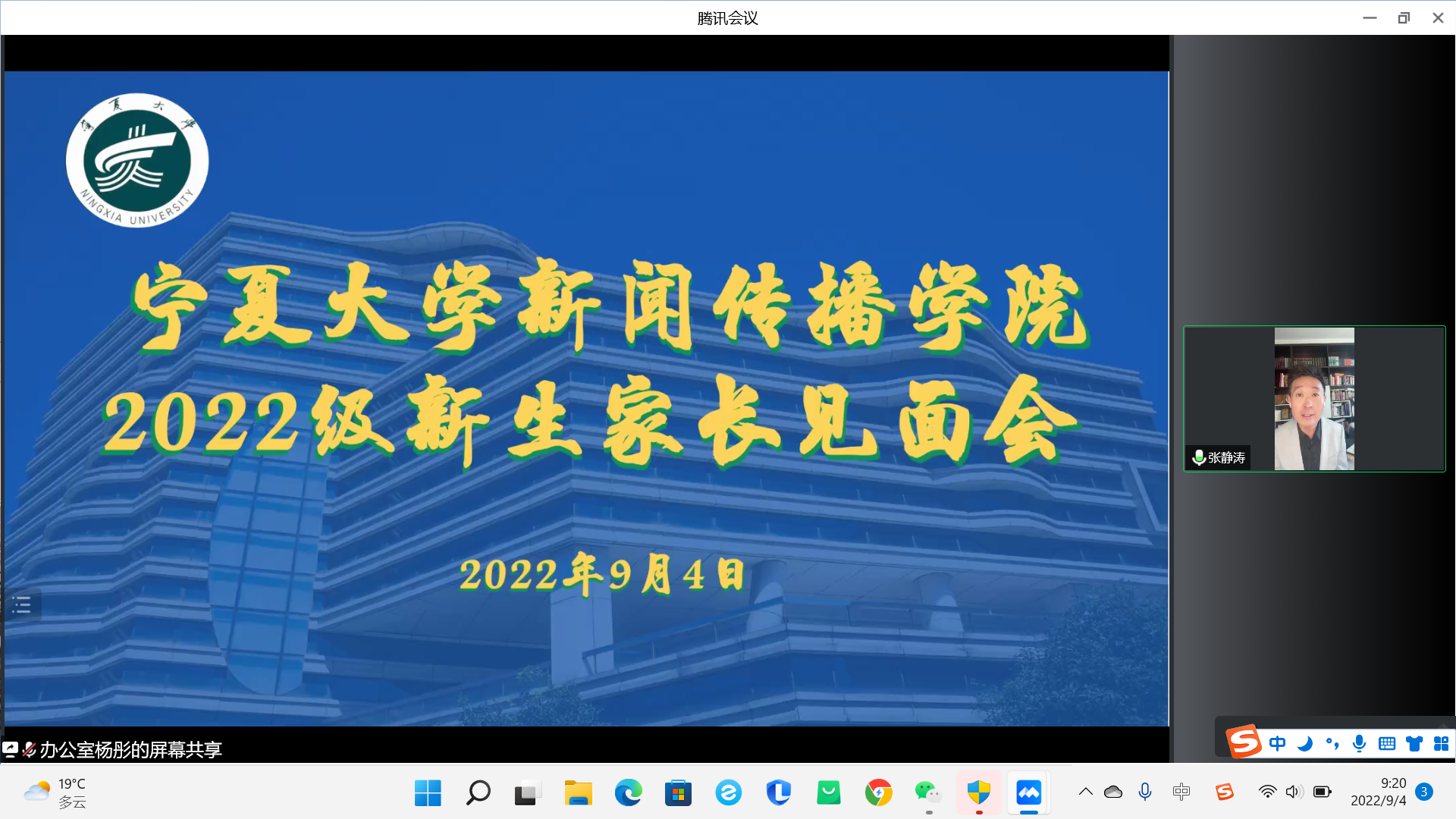 9月4日上午,我院于腾讯会议召开了2022级新生开学典礼及新生家长见面会,学院领导班子成员、系主任、新生班主任及2022级本科生、研究生及新生家长在云端参加了会议,会议由学生工作办公室主任雷丽霞主持。