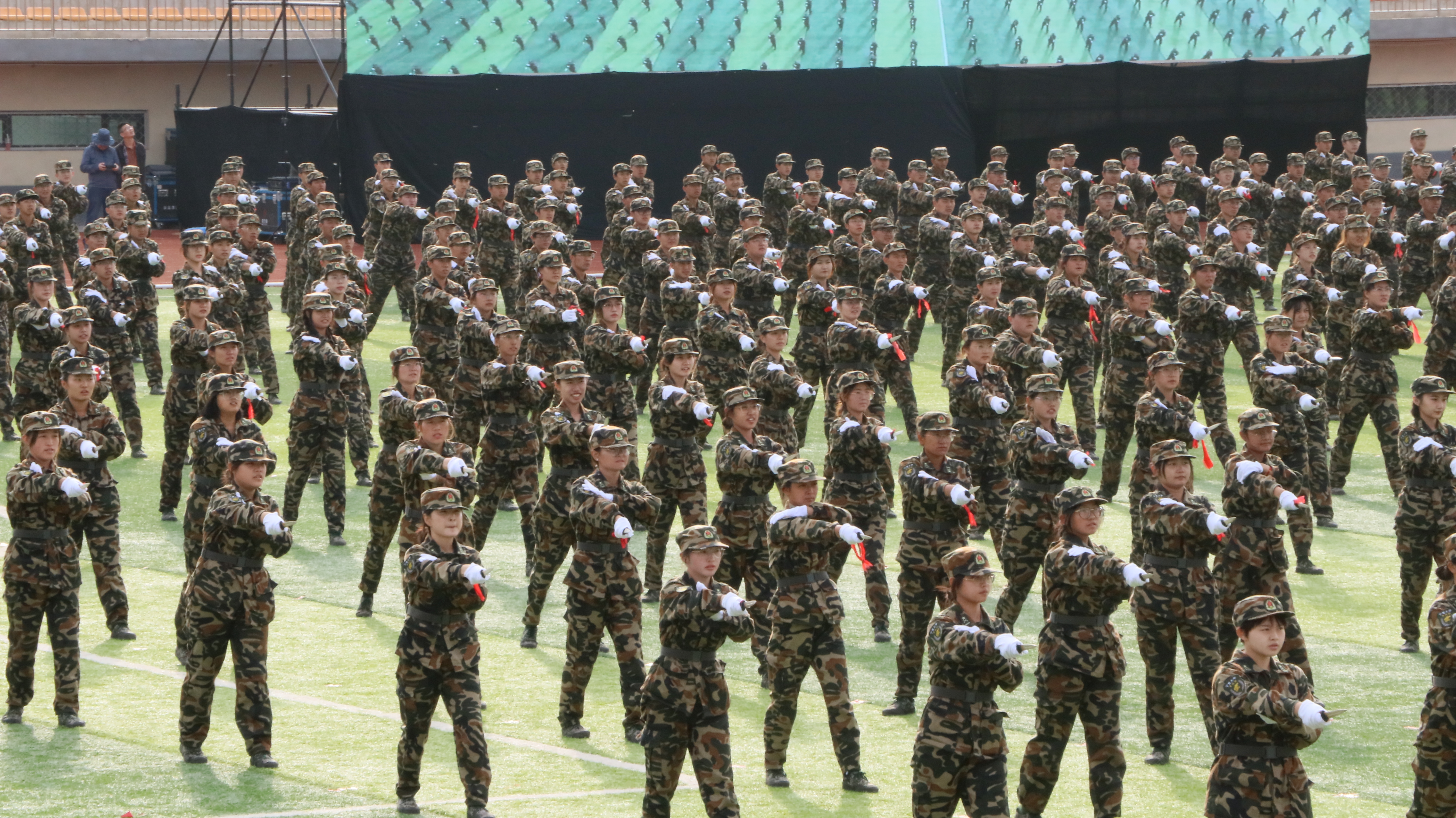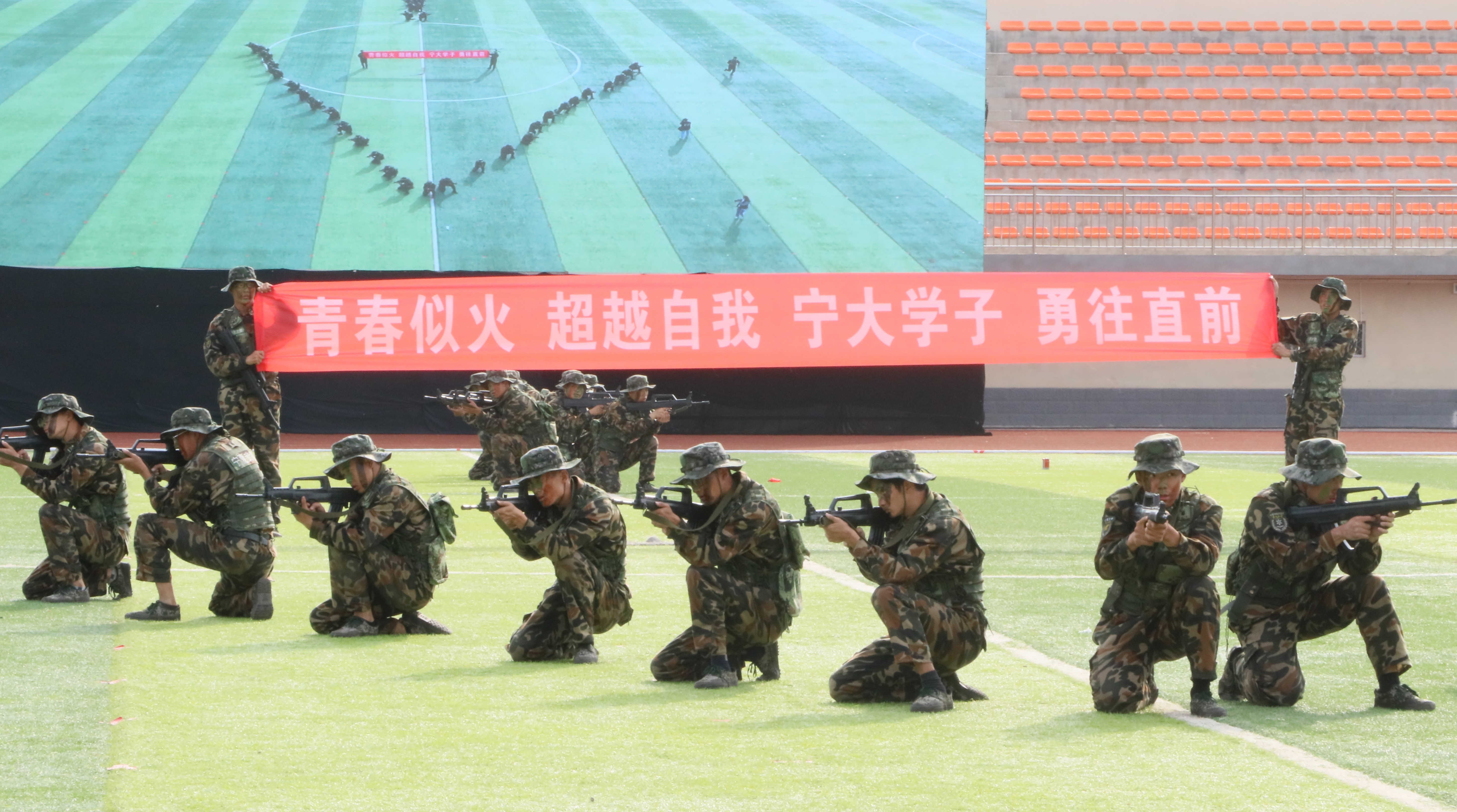 匕首操、擒敌拳、防爆队形、军歌合唱等精彩演出声势浩大、震撼人心,无数个个体团结一心,一招一式尽显披荆斩棘的壮志与豪情!