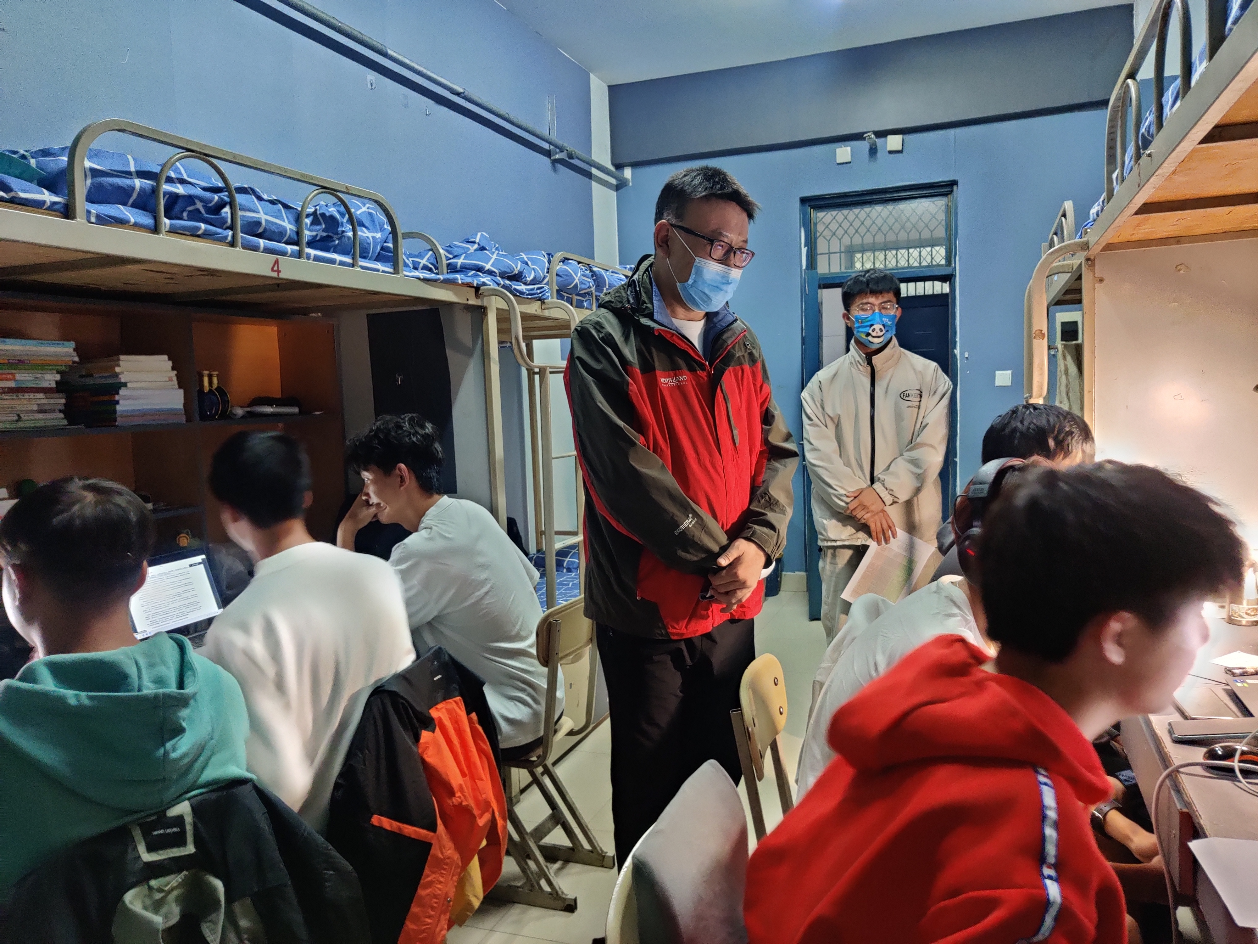 领导们深入宿舍,与同学们展开亲切地交谈。潘瑞十分关心同学们在防控期间的生活状况,细致询问大家在生活中遇到的问题,并为同学们在疫情防控期间如何保持学习效率及质量提出了建议。潘瑞叮嘱同学们要遵守规定、注意防护,同时也要认真学习、保持积极健康的心态。大家共同努力,才能一起营造安全有序的校园环境。