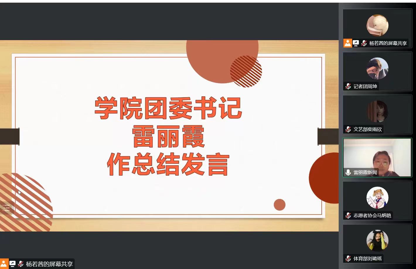 雷丽霞作总结发言,她对2022年秋季学生会的工作给予了肯定,她强调全体成员要在工作中着眼大局,注重细节,努力打造学院品牌,并对学生会及成员提出以下要求:一是要践行为同学服务的宗旨,开展结合专业优势的活动;二是要高标准要求自己,平衡好工作与学习的关系;三是要加强成员之间、成员与老师及兄弟学院组织的沟通与协作能力;四是要积极主动地研究工作,以更高的要求对待工作。最后,雷丽霞对下学期工作规划提出了要求。