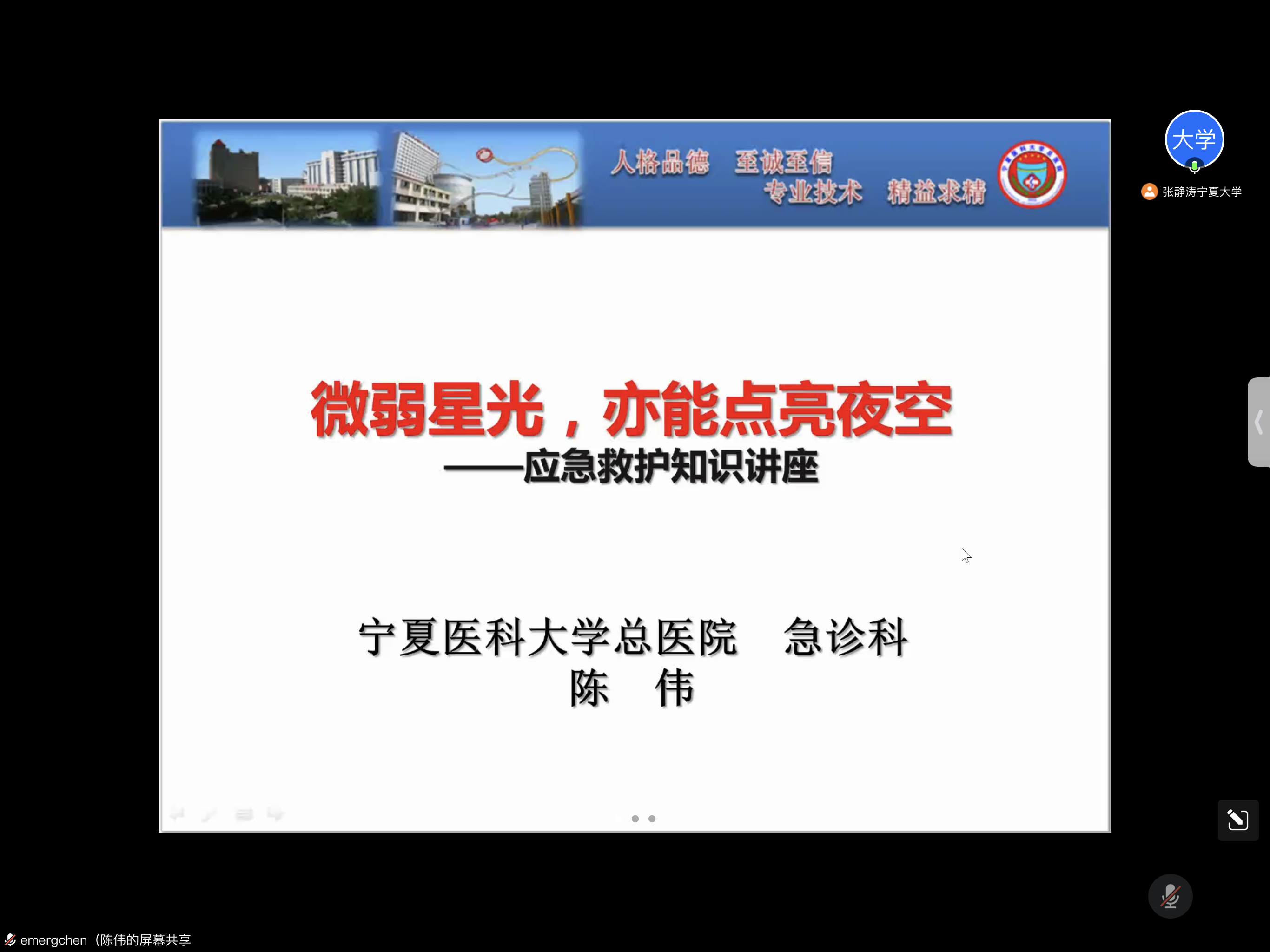 承办的第八期马克思主义新闻观培训以线上方式举行。此次培训的主题是“微弱星光,也能点亮夜空---应急救护知识讲述”,特邀宁夏医科大学总医院急诊科主任医师、中华医学会急诊医学分会感染学组委员、中国医师协会急诊分会青年委员陈伟主讲,91视频