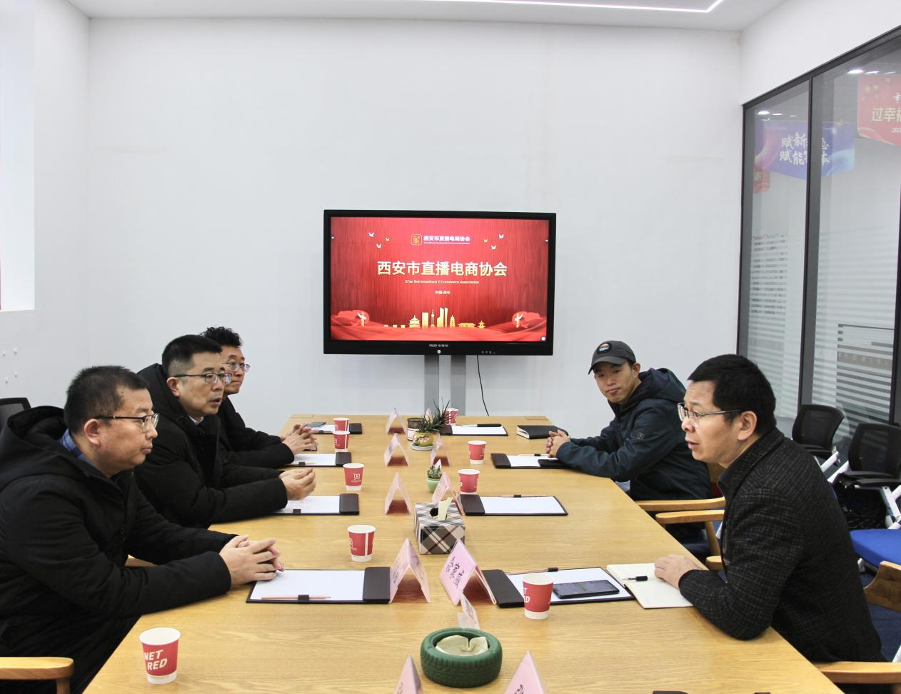 第三站,调研组一行来到西部云直播网红商城总部基地,调研了解西安直播电商协会成立背景、业务板块、赛事活动等。西安直播电商协会通过“直播+X”的方式、优化产业生态链、整合上下游资源,构建线上线下融合新零售商业模式,通过直播生态系统搭建服务城市,贡献力量。双方就直播教学与培训、数字化人才培养与孵化进行深入对话。西安直播电商协会会长杨森然结合91视频