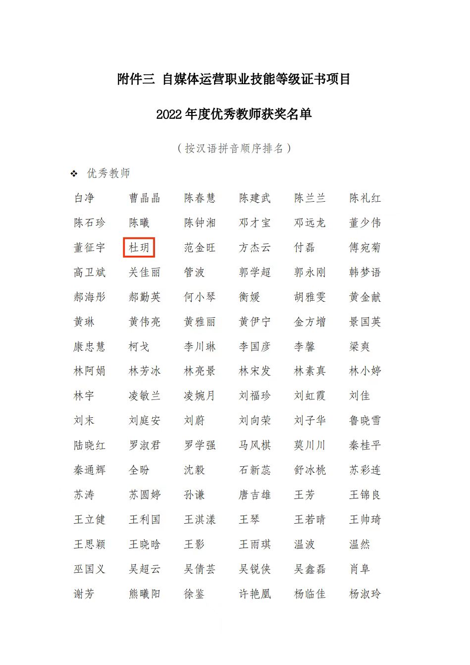 教师杜玥荣获优秀教师奖,学生勉宁荣获优秀学生奖。