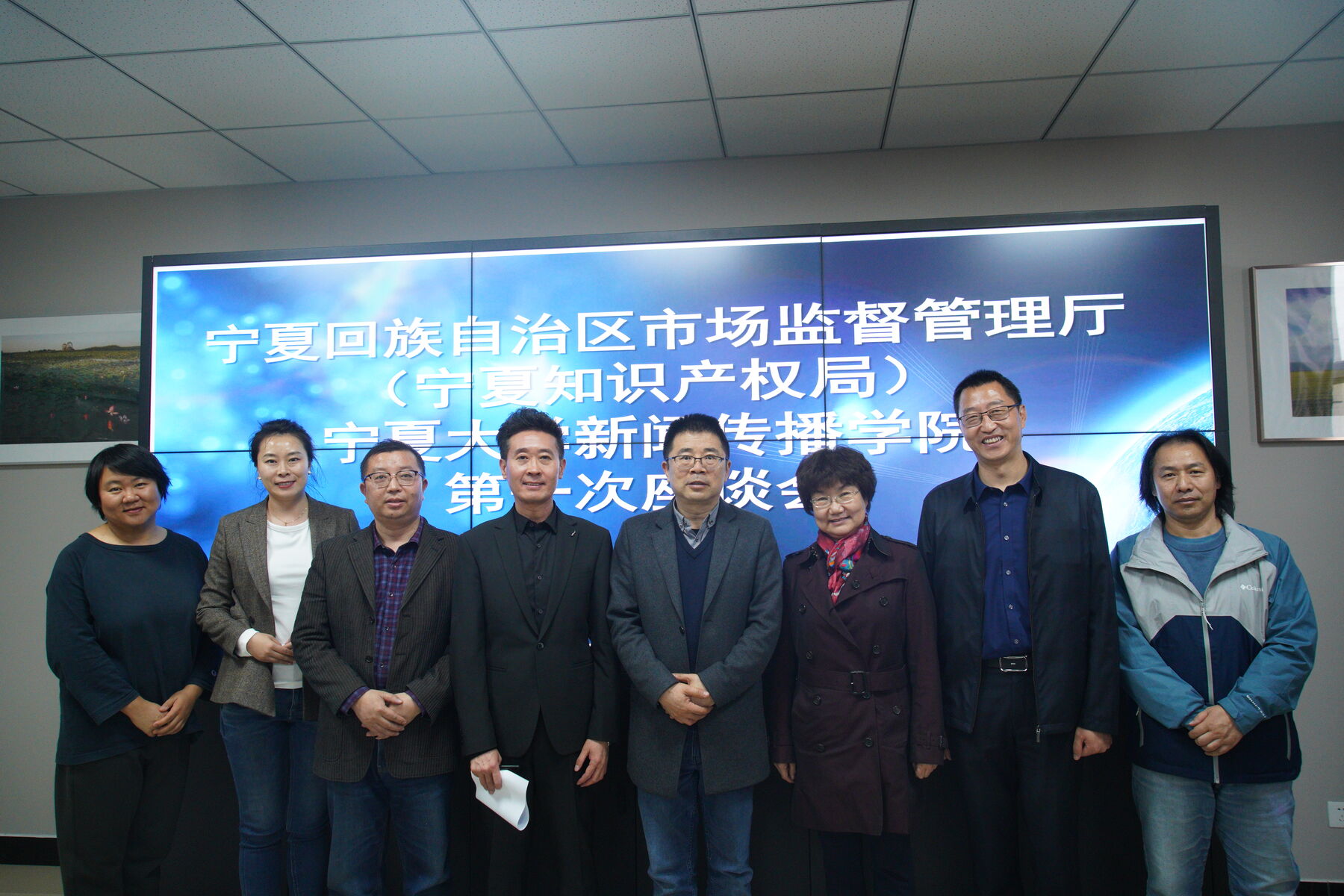 3月21日下午,自治区市场监督管理厅人事处处长黄劲松、知识产权保护处处长张亚宁来我院调研座谈。学院执行院长李世举、副院长张静涛,广告系主任朱俊松、副主任王利,新闻系副主任于璇,广告系整合品牌传播教研室主任赵雅洁参加了调研座谈会,张静涛主持座谈。