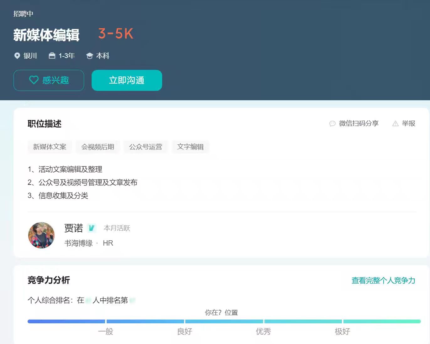 岗位:新媒体编辑