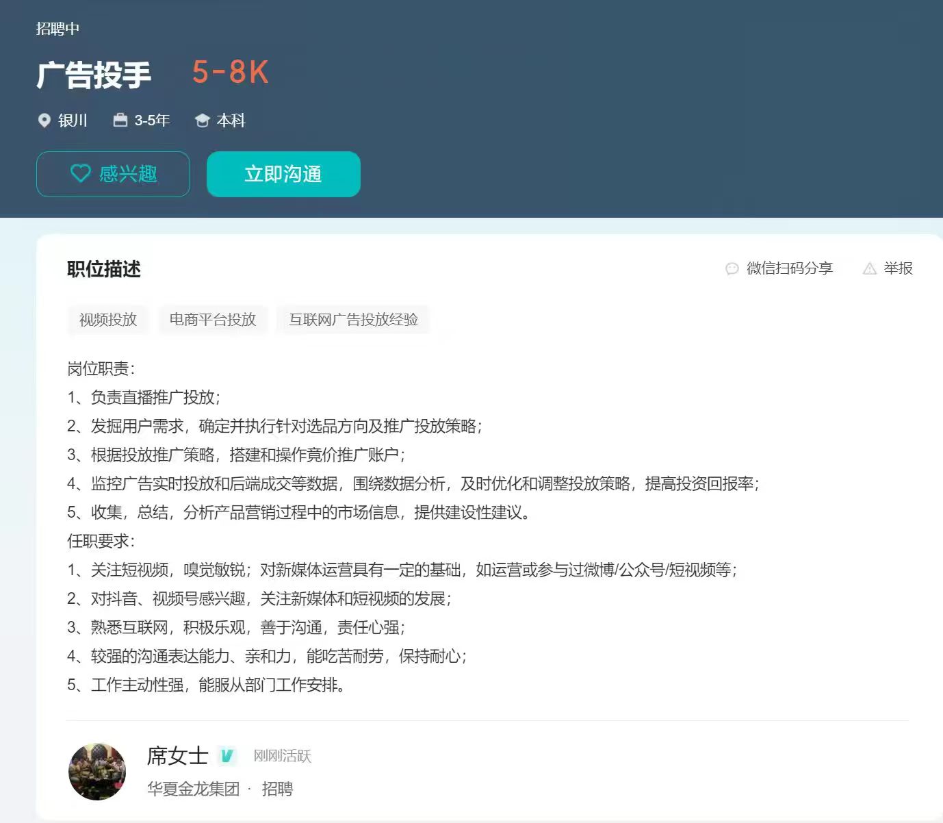 岗位:广告投手