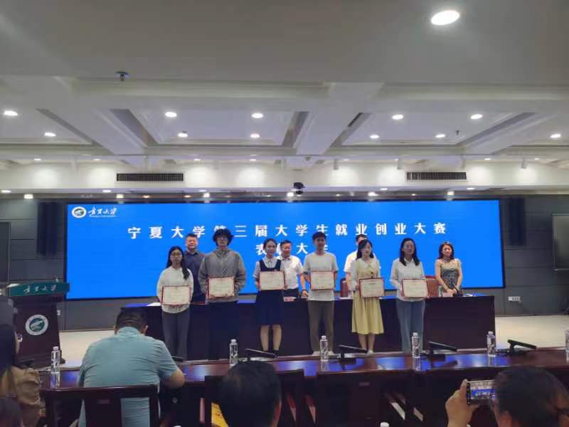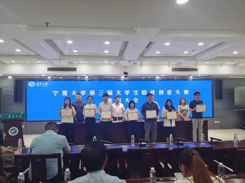 第三届大学生就业创业大赛表彰大会在贺兰山校区德勤楼六楼中心会议室召开,我院共有10名同学获得一二三等级,其中求职实践组三位一等奖获得者均为我院学生,分别是2020级卓越新闻人才班方佳龙、2022级硕士研究生易芳和廖春博。谢明辉教授荣获“优秀指导教师”荣誉,易芳作为优秀学生代表发言。校党委常委、副校长黄河、创新创业学院院长冯蛟等出席表彰会。