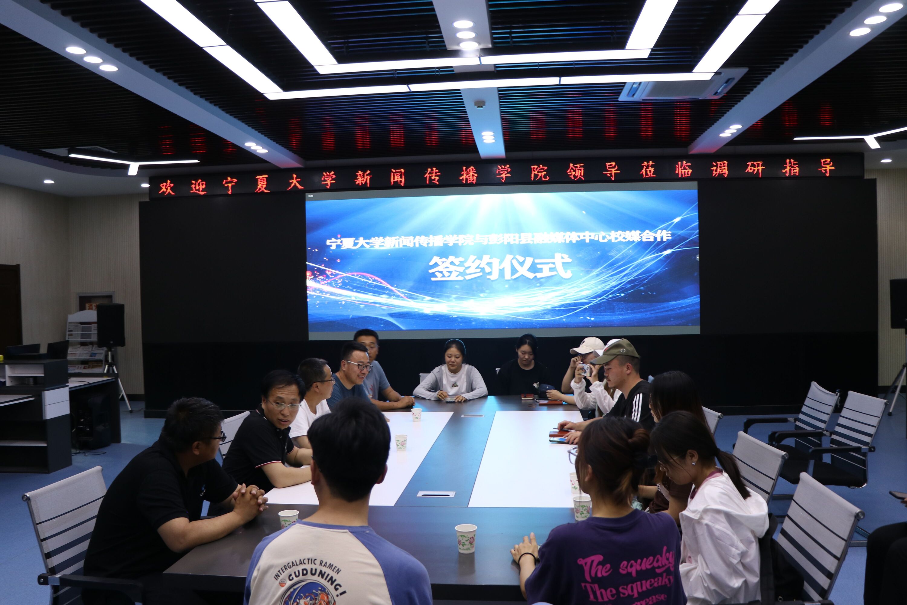 参观结束后,实训小组一行来到彭阳县融媒体中心实地参观了新闻制作室、录音室、新闻导播间、新闻直播间等主要功能区。融媒体中心的工作人员与学生们进行了面对面的交流,帮助学生了解融媒体中心形成发展过程以及工作机制。
