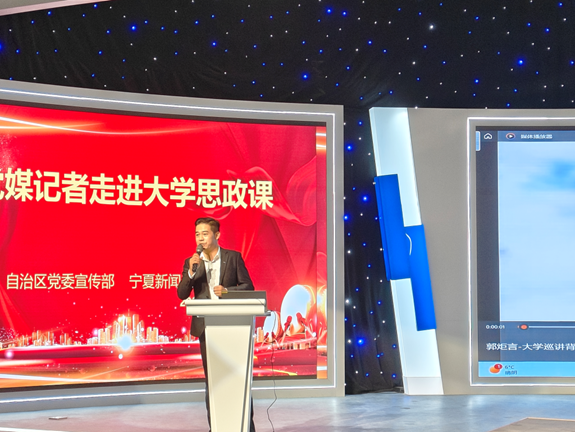 宁夏教育电视台记者吴锦恒带来了名为《把爱我中华的种子埋入每个孩子的心灵深处——我的铸牢中华民族共同体意识教育宣传故事》的主题演讲。他结合自己在幼儿园的采访经历以及参与同心小学教育宣讲的实践,阐述了教育新闻工作者在铸牢教育阵地中的重要作用。他呼吁在座的师生共同肩负起讲好教育故事、宁夏故事和民族团结故事的责任与使命。