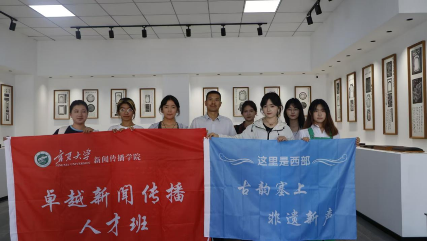 银川组17名师生迎着盛夏晨光,前往银川市贺兰县文联文创基地,开展“这里是西部——古韵塞上 非遗新声”国情区情调研以及实践采访活动。