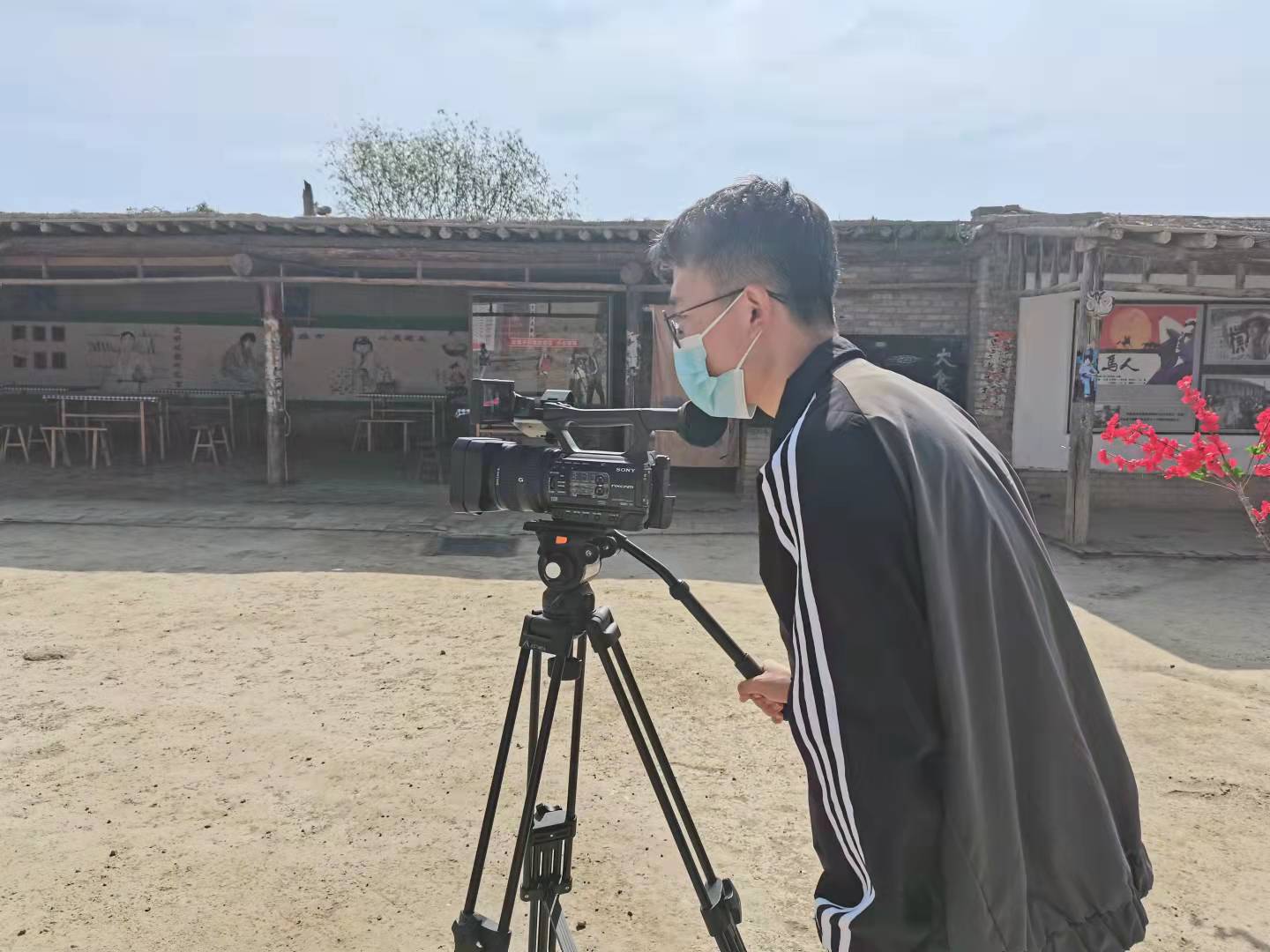 上午10时,实训小分队到达目的地,开始设备的调试与安装,老师们在现场进行设备规范化操作和安装指导,为同学们进行拍摄打好基础。小分队成员分成三路,分别采用肩扛式摄影机、三脚架固定机位拍摄、灵眸便携式相机进行不同角度的拍摄,分工合作,以保证作品产出形式的多样性。
