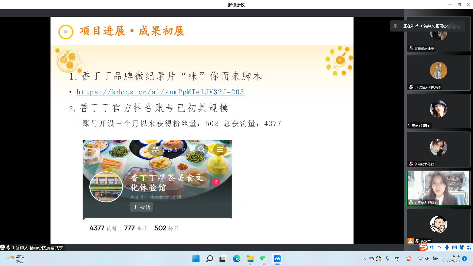 为培养学生创新创业能力,总结创新创业项目阶段性成果,9月28日,我院在线上开展了“2022年大学生创新创业训练项目中期答辩”活动,教学科研办公室负责人雷双军老师、丁洁华老师、赵雅洁老师担任答辩评委。