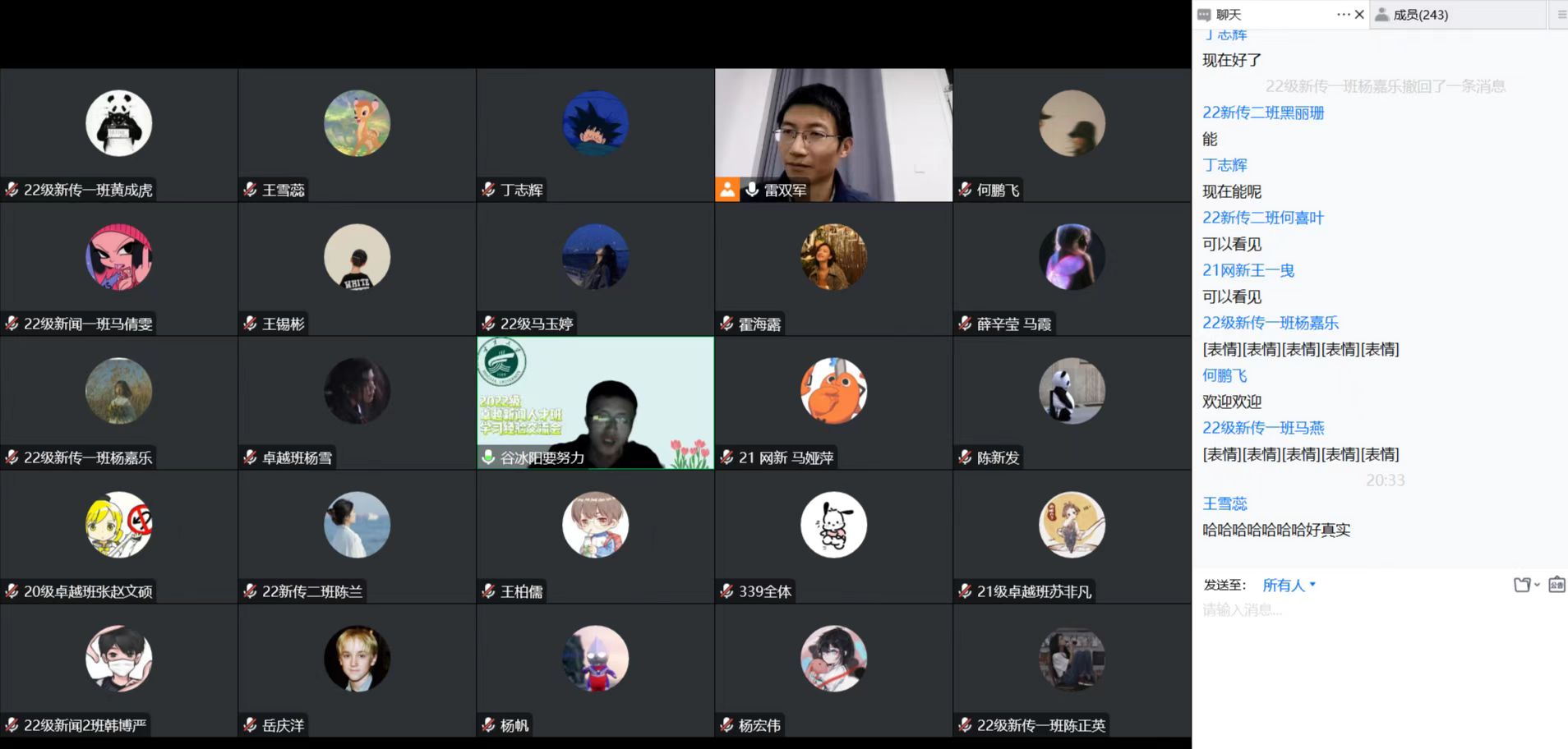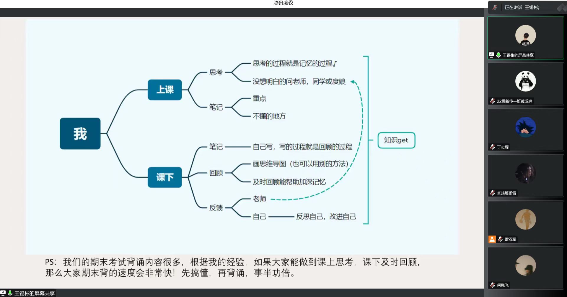 雷双军在总结时强调,学习贵在坚持和自律,希望同学们通过学习学长学姐分享的经验,用更加科学的方法和更端正的态度对待线上学习。